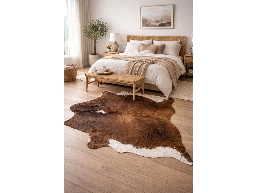 A barna marhabőr egy időtlen lakberendezési elem, amely ötvözi a természetes eleganciát, a kivételes dizájnt és a hosszú élettartamot. Ez a prémium marhabőr darab ideális szőnyegként, takaróként, fal- vagy padlódekorációként.