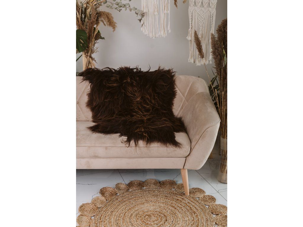 A barna izlandi báránybőr természetes melegséget és rusztikus bájt visz a térbe – ideális egy hangulatos, hagyományőrző légkör megteremtéséhez.