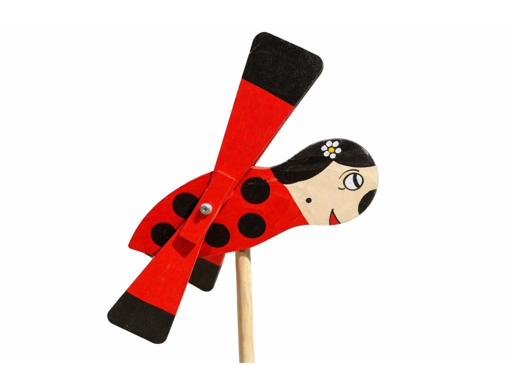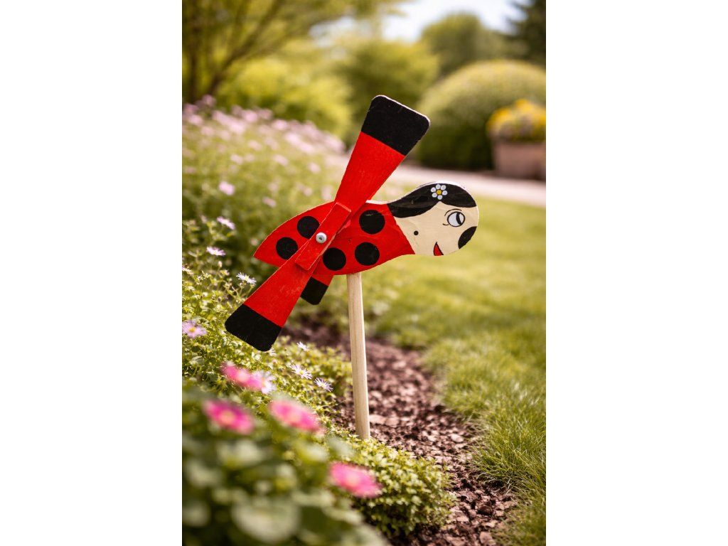 Egy aranyos, katicabogár alakú, fából készült propeller feldobja kerted vagy udvarod minden szegletét. Vidám, mozgó dekoráció, amely minden szellőre életre kel, és színeket, mozgást és jó hangulatot hoz a kültérbe. A katicabogár, mint a boldogság és a tavasz szimbóluma, nagyszerű természetes kiegészítője egy vidéki vagy modern kerti stílusnak.