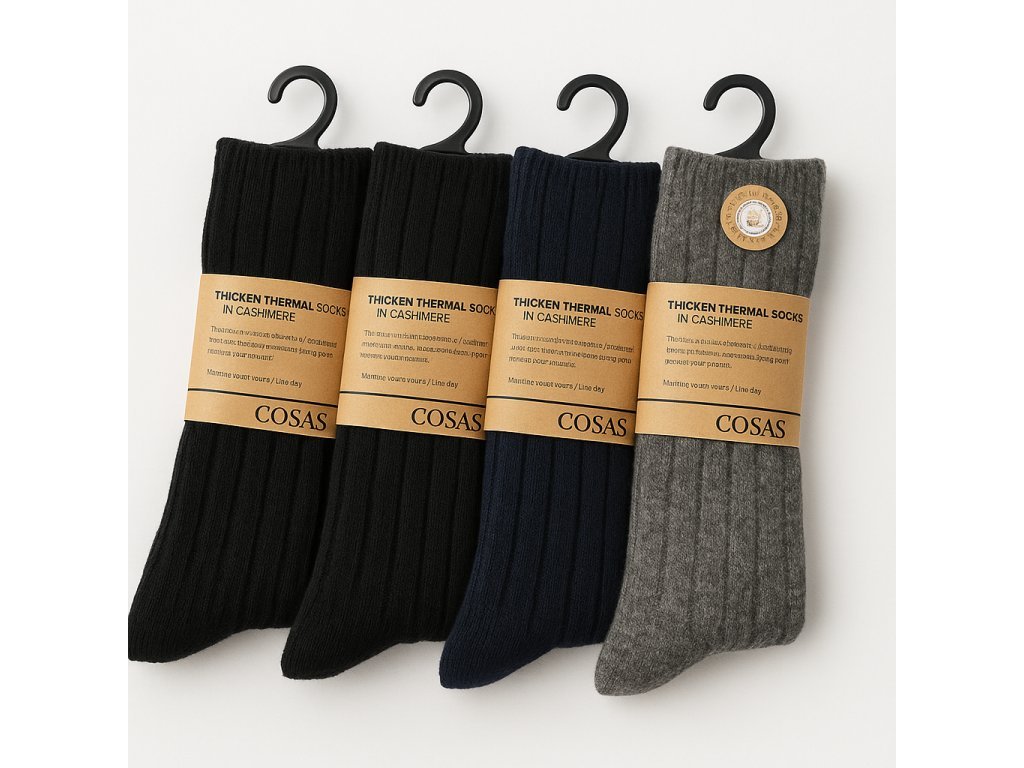 Férfi Termosz Kasmír Zokni - 4 Páros Csomag (Fekete, Kék, Szürke)