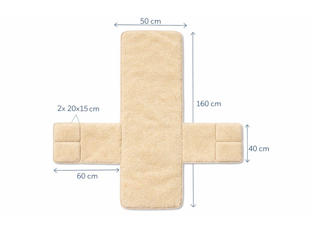 ✅ Természetes anyag – 100 % báránygyapjú, amely lélegzik és hozzájárul az egészséges üléshez.
