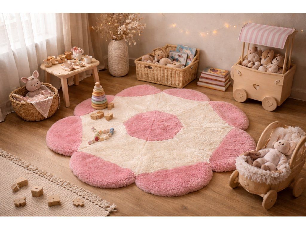 🌸Szőnyeg virág rózsaszín báránybőrből - puhaság és játékosság gyermekednek 🌸